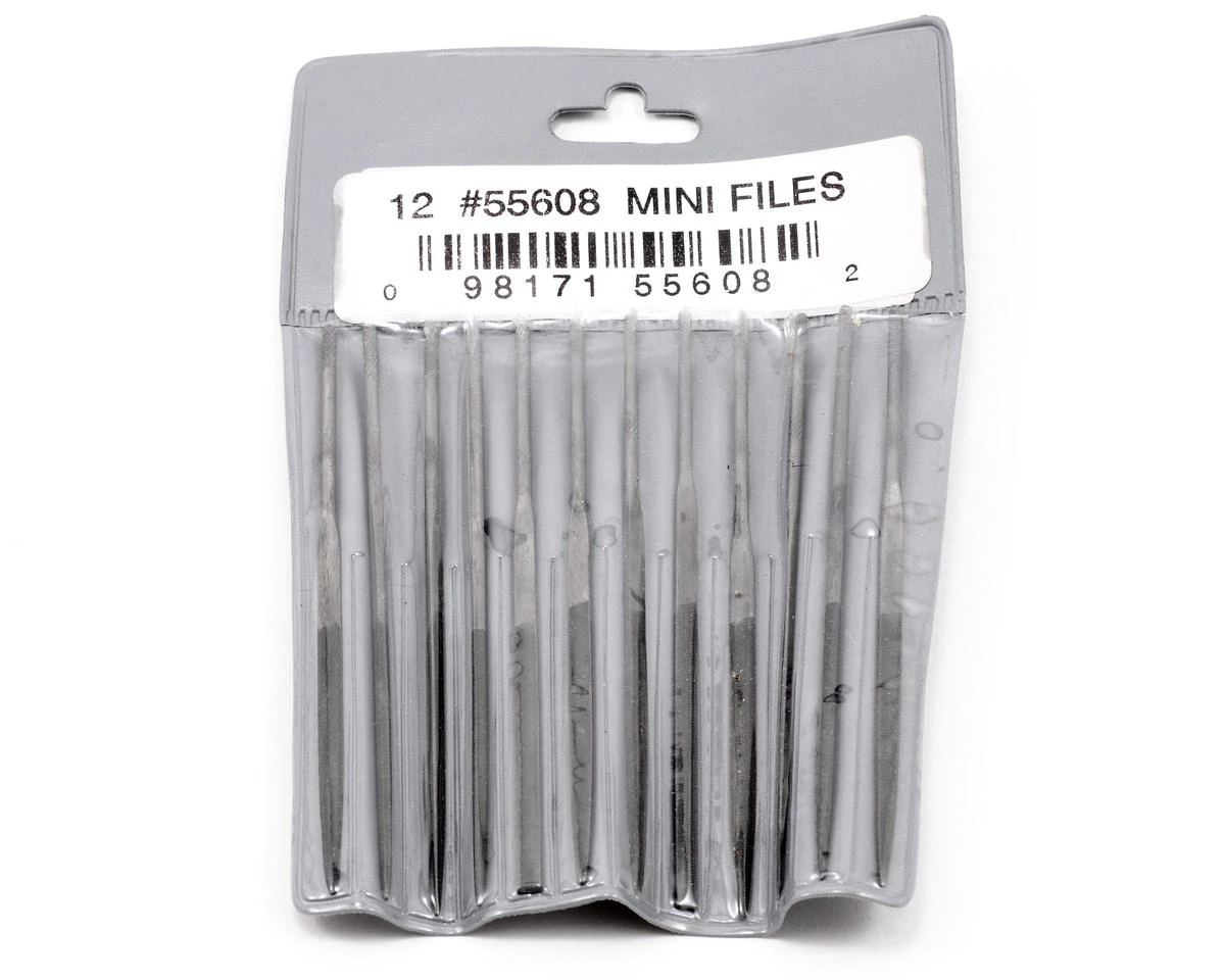 This is a pack of twelve Excel Mini Files. Package includes various 4″ mini flat, rat tail, triangle and half round files that are perfect for intricate filing and detailing. Includes a vinyl storage pouch.