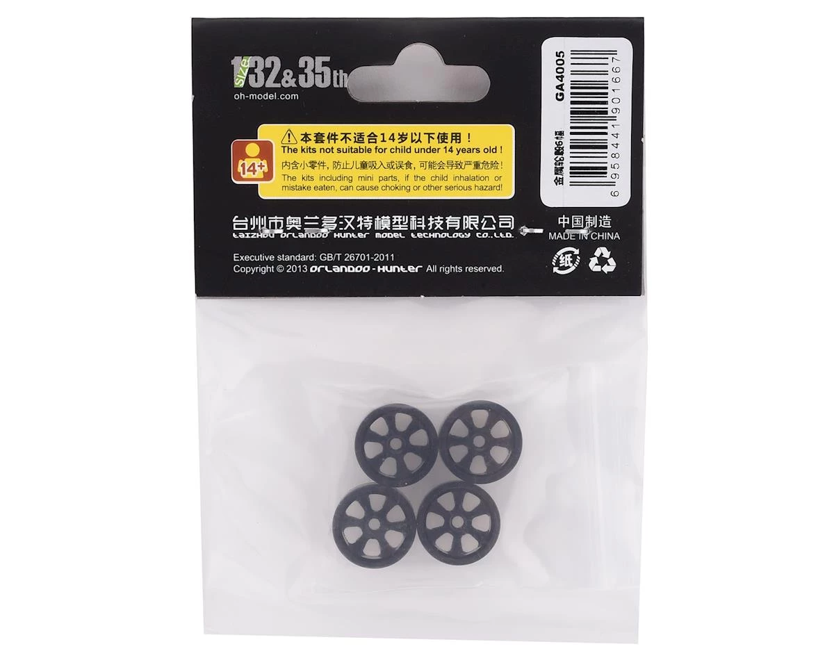 The Orlandoo Hunter Aluminum 6 Spoke Wheel Set is a must have upgrade for your 35A01, 32A02 or 35P01 model. These wheels are machined aluminum and are approximately 1 gram heavier than the stock wheels, providing a little more weight down low for improved traction and stability. Package includes four wheels.
