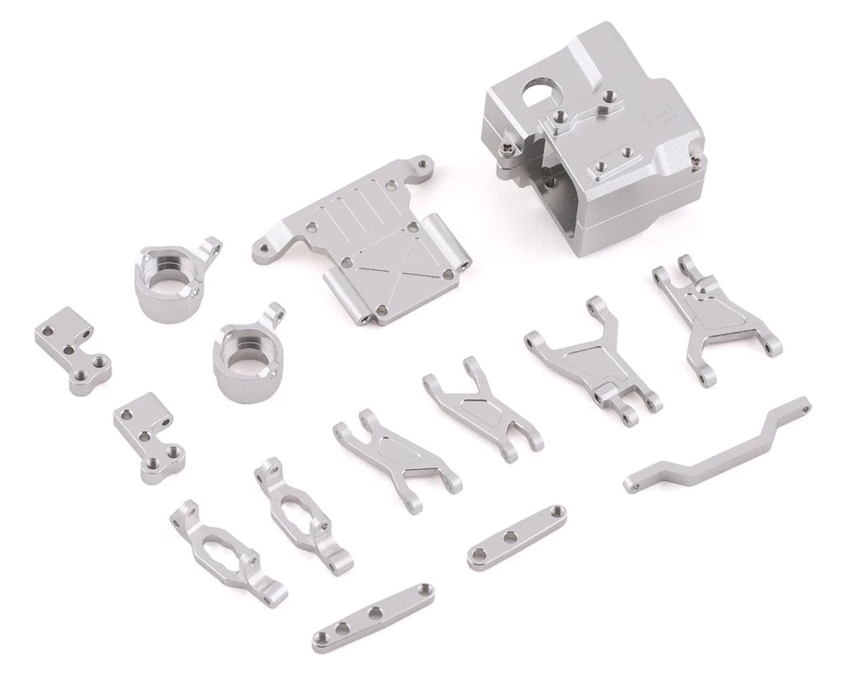 The Orlandoo Hunter 32P02Â Aluminum Independent Suspension Kit is a great optional upgrade for the front suspension found in the stock 32P02 truck. This kit will not only give your Orlandoo some bling but it will also give you a very durable front end. While this kit does include most components, some parts from the factory transmission will need to be transferred over. Package includes aluminum transmission case, skid plate, upper and lower suspension arms, C-hubs, steering knuckles, steering arms, drag link and hardware.Â