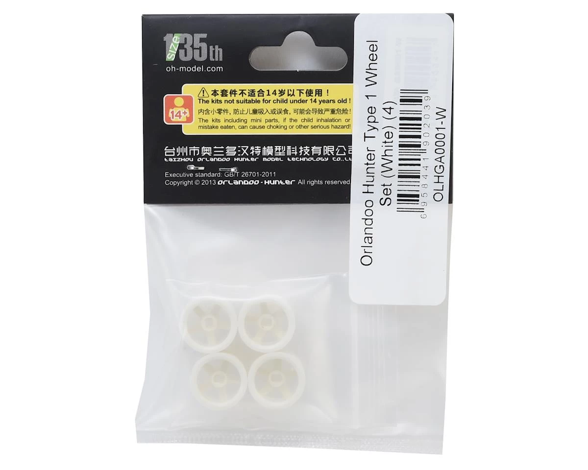 Orlandoo Hunter Type 1 Wheel Set. These wheels feature a five spoke design and are compatible with the Orlandoo 35P01 F150, 35A01 Jeep and 32A02 Pajero kits. Package includes 4 wheels.