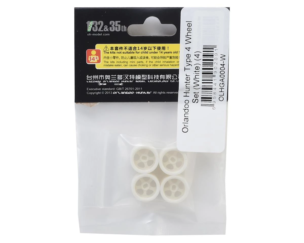 Orlandoo Hunter Type 4 Wheel Set. These wheels feature a five spoke design and are compatible with the Orlandoo 35P01 F150, 35A01 Jeep and 32A02 Pajero kits. Package includes 4 wheels.